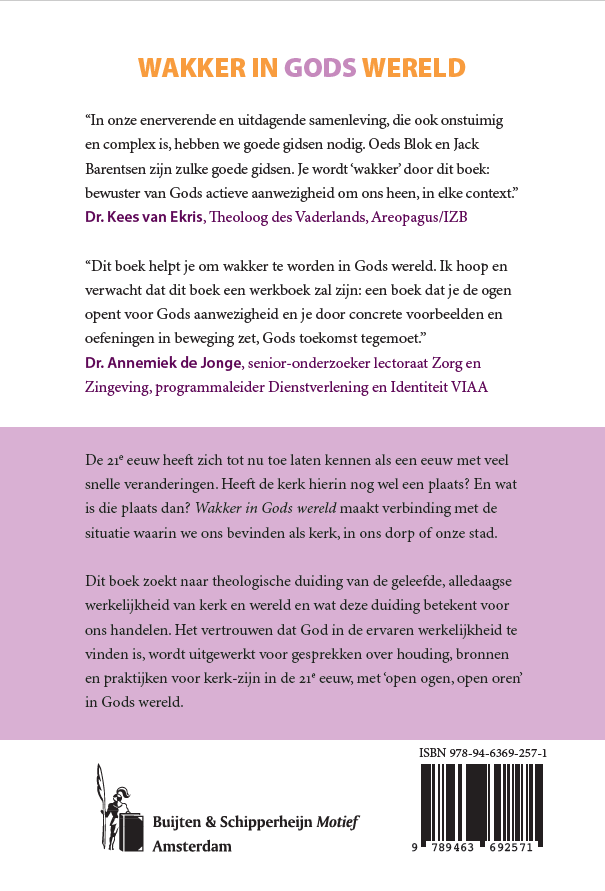 “In onze enerverende en uitdagende samenleving, die ook onstuimig en complex is, hebben we goede gidsen nodig. Oeds Blok en Jack Barentsen zijn zulke goede gidsen. Je wordt ‘wakker’ door dit boek: bewuster van Gods actieve aanwezigheid om ons heen, in elke context:’